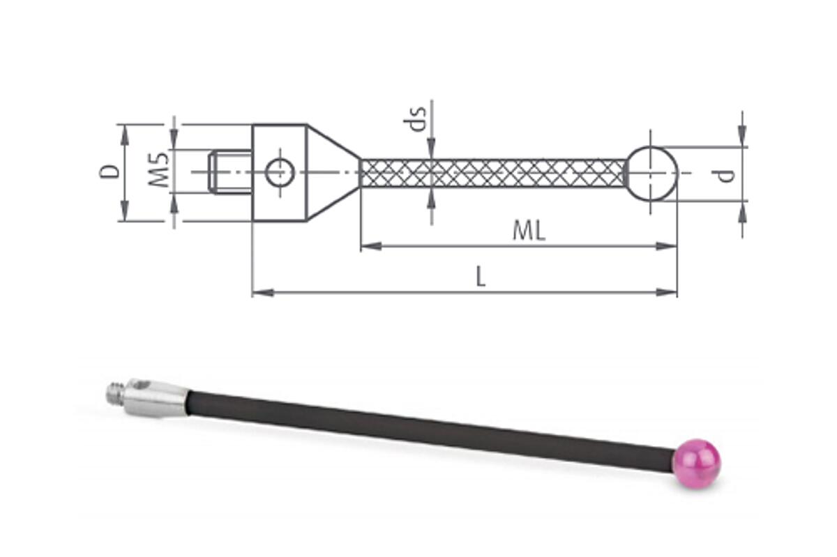 Taster M5 Rubinkugel mit Kohlefaserschaft